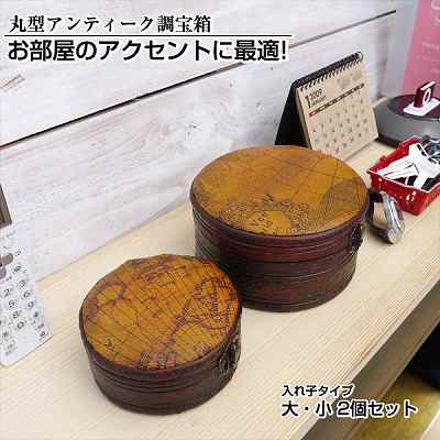 アンティーク調地図柄宝箱(丸型) 大小2個セット ※バラ売りも可能!Wood