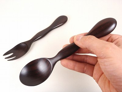 シタンの木 子供用スプーン、フォーク サイズ大 (木製カトラリー)