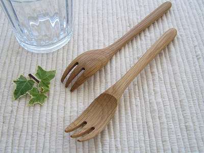 オーク材(楢の木) テーブルスプーン、テーブルフォーク サイズ中 (木製カトラリー)