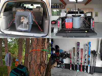 また工夫次第でボート、トラック、RVカー、キャンピングカー、4輪バギー、オートバイ、自転車などを使用した様々なアウトドアアクティビティからキャンピングやアウトドアクッキングまわりまで、様々なギアの固定やハンギングに活用が出来ます。