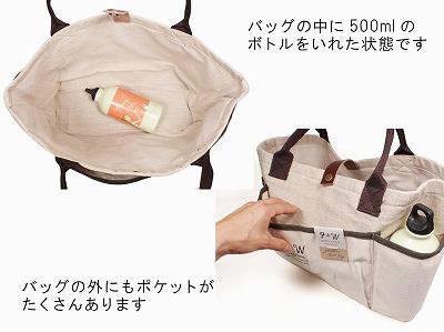 ガーデニング用具を収納して【園芸バッグ】として使ったり、愛犬の【お散歩バッグ】や【ピクニック用バッグ】として使ったりと色々と応用の利く大きなトートバッグです。