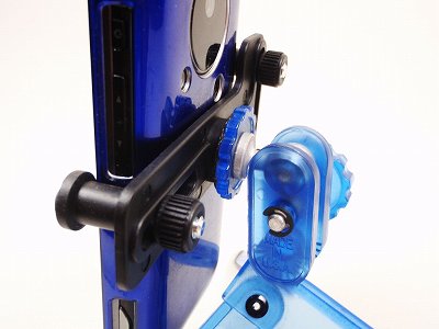 セルパッドアダプターの背面つまみを回してロックし、お手持ちのスマートフォンの幅サイズに調節してを固定します。