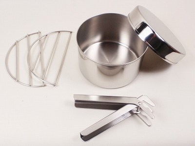 別売りのポットサポートを使用するとケリーケトルの炎が噴出す上部にクッカー(鍋)をセットすることができます。