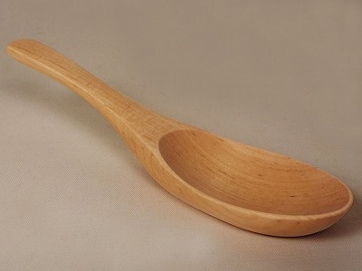 ずんぐりむっくりとした丸いフォルムの可愛い木製スプーンです。
