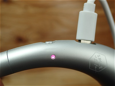 充電中はLEDランプがピンク色に点灯します。