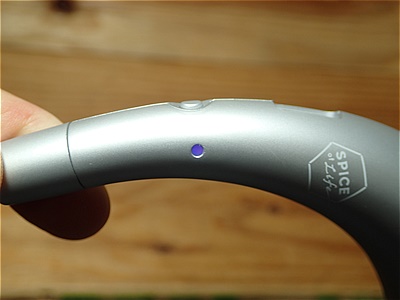通電中は、紫色がかったブルー色に点灯します。明るい場所では通電中のランプが少々分かりにくいです。