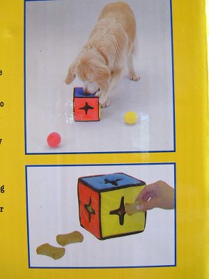 ワンちゃんは取り出そうと夢中になり、遊びながら知恵を身に付ける知育玩具です。その他に、ビスケットなどのおやつを中に入れても夢中で遊びます。