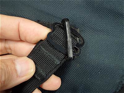 ・次にウエストベルトの付け根にある樹脂リング金具を通します