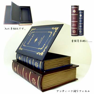 洋書風アンティーク調小物入れ、本棚にさりげなく!本型小物入れ(宝箱)