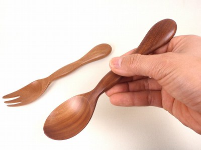 粘りが合って割れにくい木なので、先の細く薄い、カトラリーを作るのに適しています。