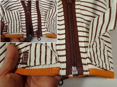 ②背中部分にある2連ファスナーのうち、ワンちゃんのサイズに合う方を選んでください。(ワンちゃんの毛を巻き込まないように注意)