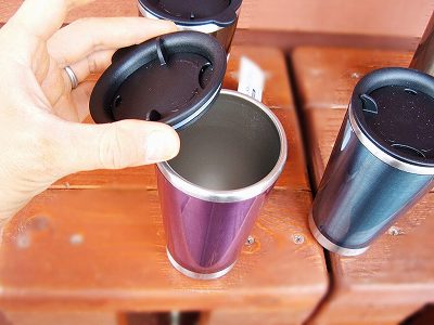 蓋をしたまま飲むことの出来る【飲み口付きのフタ】は大変便利でとても飲み易くできています。